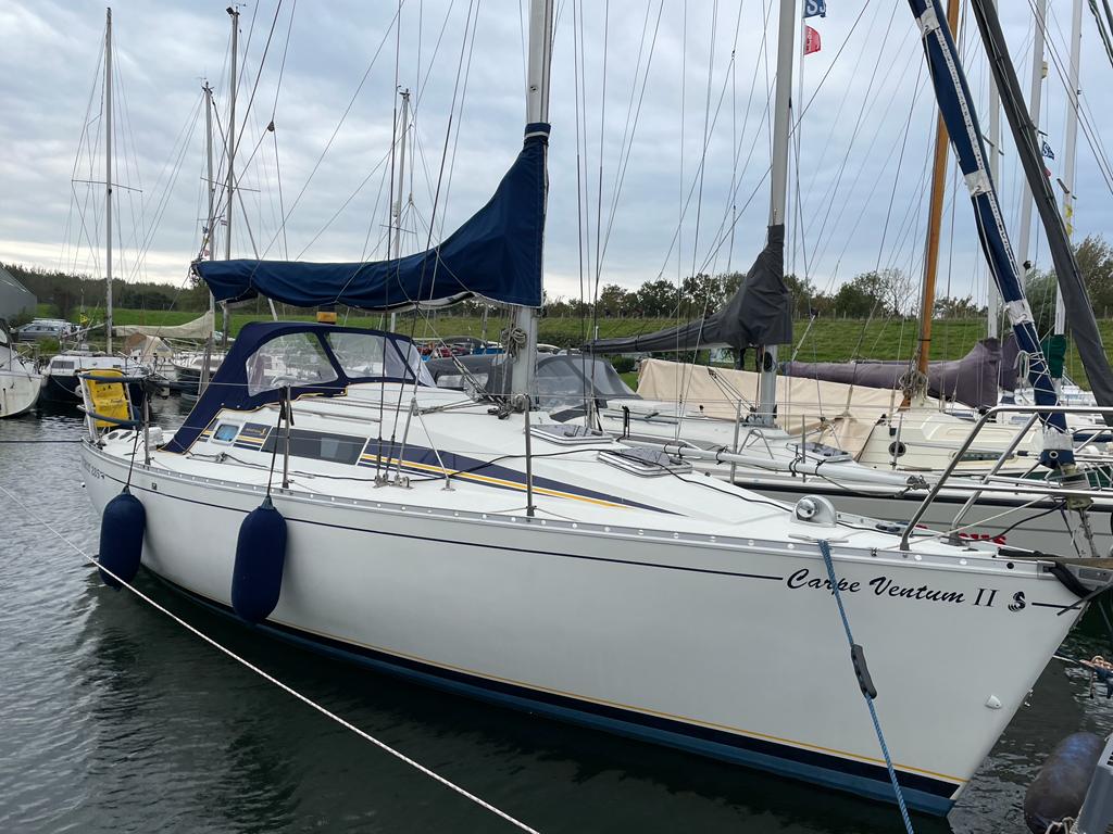 Ondertussen waren we nog steeds druk aan het kijken naar interessante advertenties en jawel hoor, anderhalve maand voor onze zeilvakantie kwamen we een pareltje tegen waarop ik gewoon móest reageren. Bij serieuze interesse konden we binnen twee dagen langskomen. En of die interesse serieus was! Nu hadden we wel met elkaar afgesproken dat we een aankoopkeuring als ontbindende voorwaarde aan de aanschaf zouden stellen en ik heb nog even geprobeerd tijd te rekken door die aankoopkeuring in te plannen na onze zeilvakantie. Maar omdat de verkoper ook weer een boot op het oog had, ging dat te lang duren. Het resultaat: de aankoopkeuring was positief, de prijs was ok dus de deal was snel gesloten.